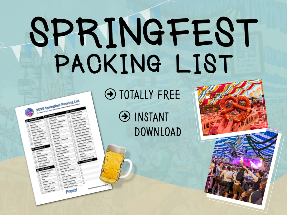 Complete packing checklist for your trip to Springfest in Munich, Germany, including everything you'll need for clothing, gear, and all travel needs.